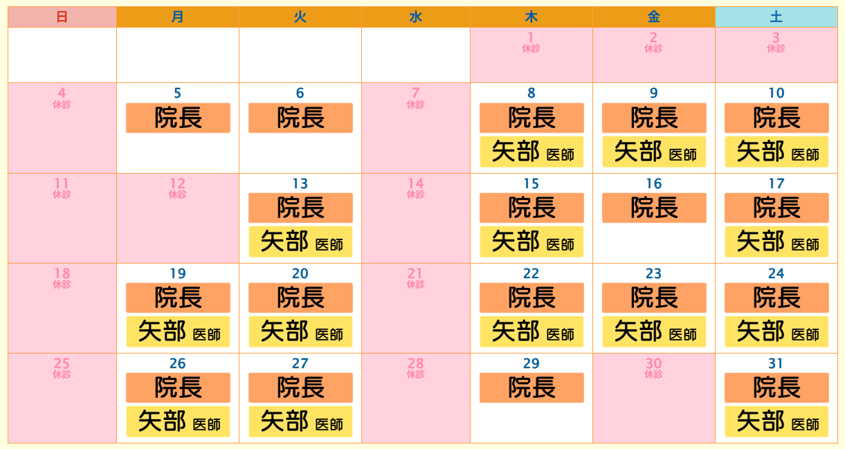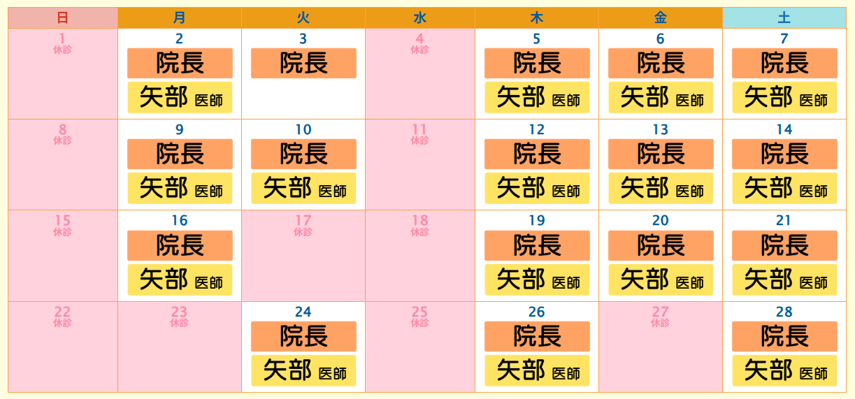 ※臨時休診となる場合もございますので、随時ご確認ください。